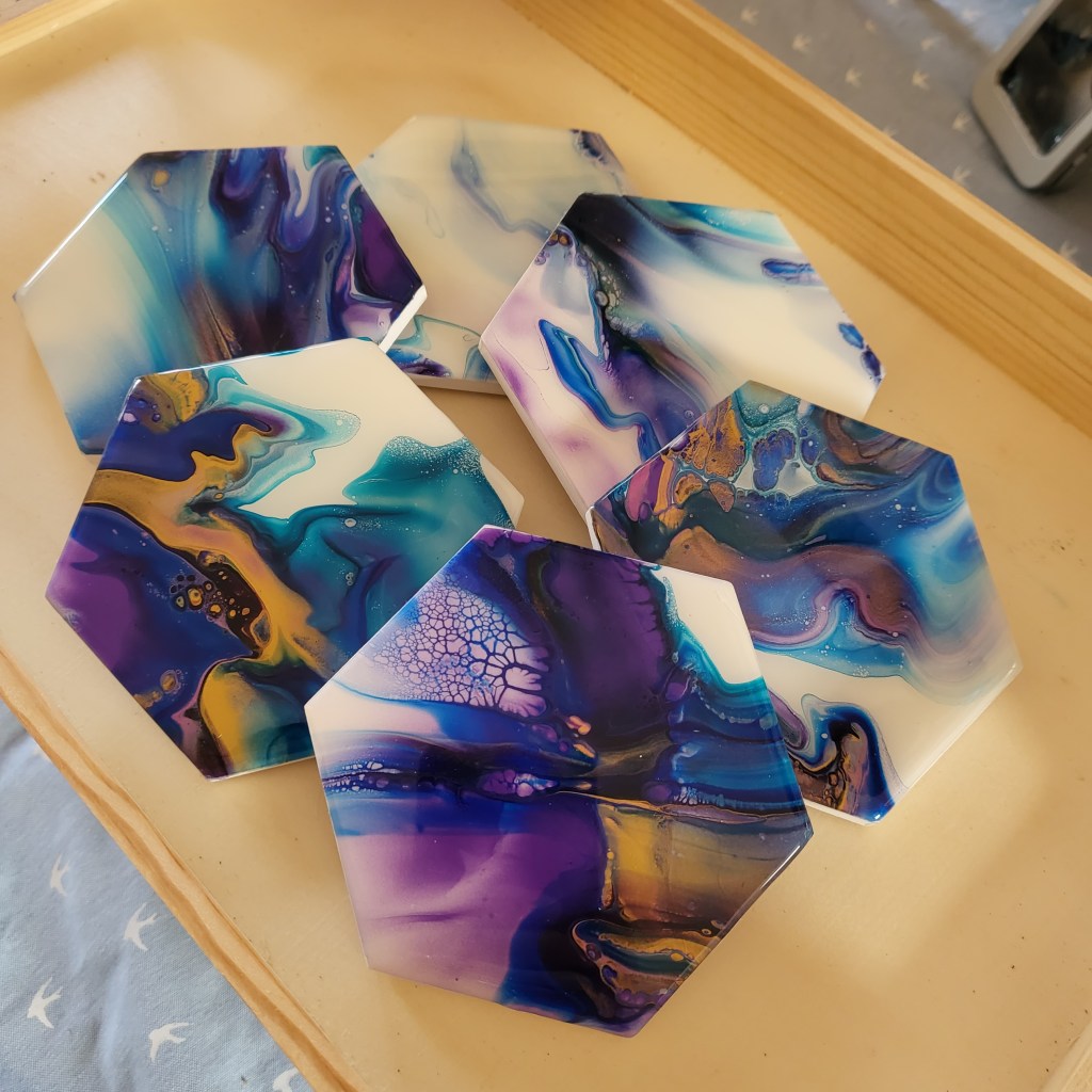 These Handmade pieces are also created from leftover paint from my acrylic pouring, and are all completely unique. There are a variety of colours and designs so please get in touch with any queries or to view in person.